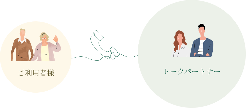 予め決まった日時に電話をかけ、ご利用者様とのトークを行います。ニーズに応じて、お話を傾聴したり、楽しく盛り上がったりして、15分のトーク時間を過ごします。